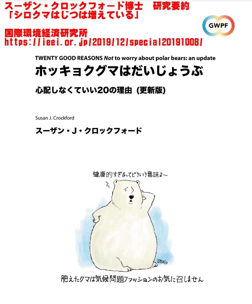 このカナダの研究者であるスーザン・J・クロックフォードの調査は、「ホッキョクグマは大丈夫、心配しなくていい20の理由」という報告書にまとめられています。